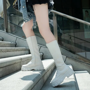 Women's Mid Calf Boots Padded Shoes Knee High Winter Sneakers Punk Style Military Casual White Black