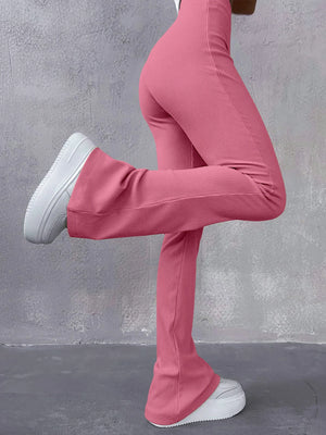 Women's Sexy Slim Pants Ribbed Solid Color Pants High Waisted Flared Pants Showing Longer Legs All-match Sports Long Pants