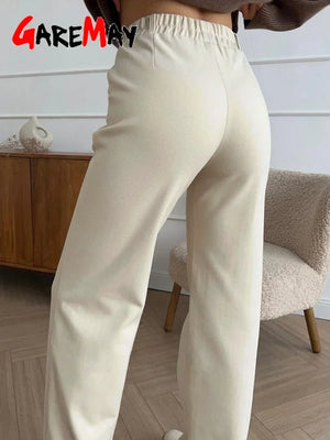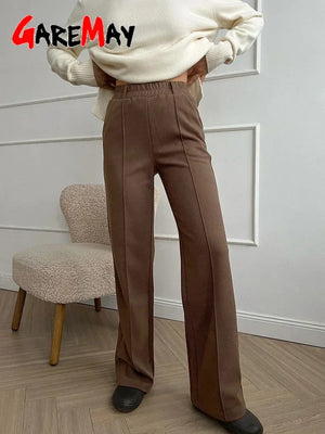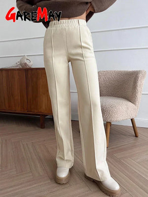 Women's Winter Pants Thick Warm Loose Classic Long Wide Leg Trousers Thermal Brown Beige Wool Long Pants for Women