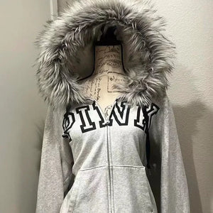 Y2K women's new plush hooded jacket for women's casual and comfortable thickened solid color street daily cardigan top