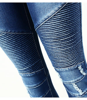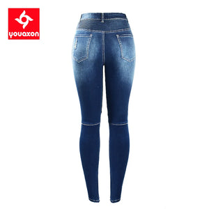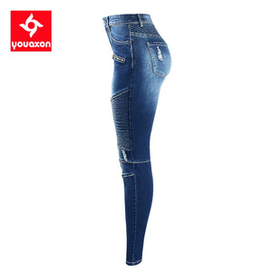 Youaxon Women`s Fashion Motor Biker Style Jeans Mid High Waist Denim Skinny Pants Jeans For Women Clothing Free Shipping