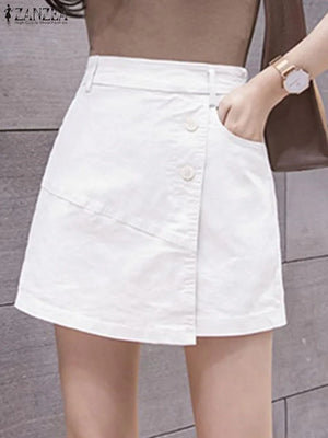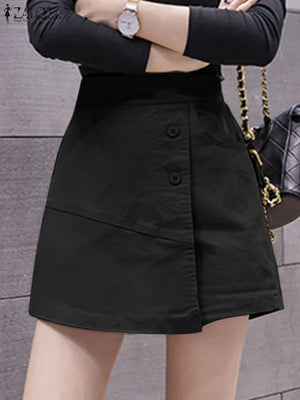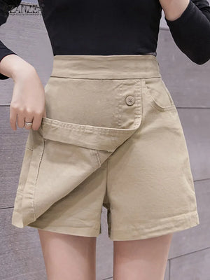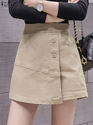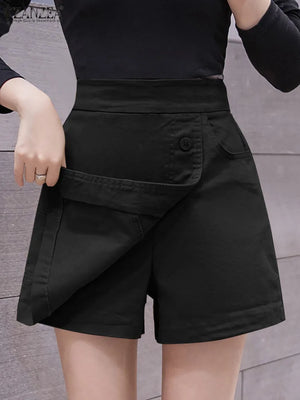 ZANZEA Women Y2K Shorts Casual Summer Solid High Waist Shorts Korean Version Asymmetrical Buttons Pants Streetwear Mini Skirts
