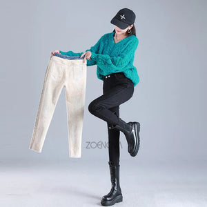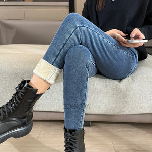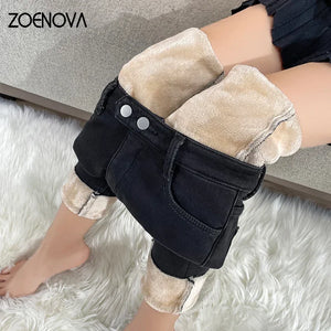 ZOENOVA Winter Thick Velvet Women Warm Hot Skinny Jeans Simple Fleece Warm Slim Fit Stretch Ladies Casual Denim Pencil Pants Y2K