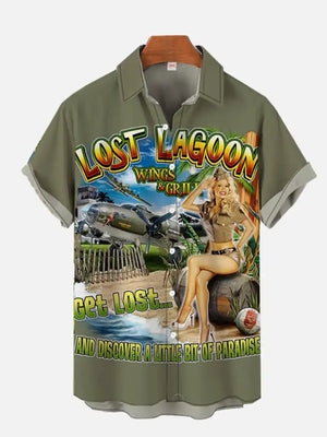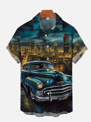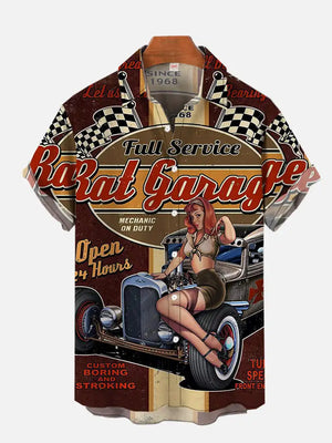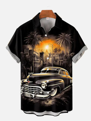 1970S-1980S Vintage Car Poster Hawaiian Beach Cowgirl Printing Short Sleeve Shirt Fashion Retro Hawaiian Shirt For Men Hrajuku
