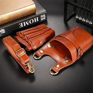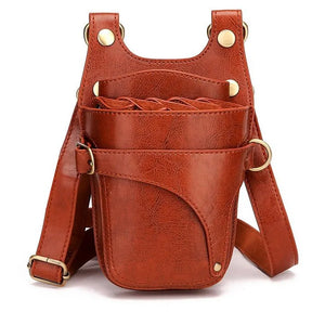 1PC Black Cowhide Hair Scissor Bag Clips Bag Hairdressing Barber Scissor Holster Pouch Holder Case With Belt Multifunction