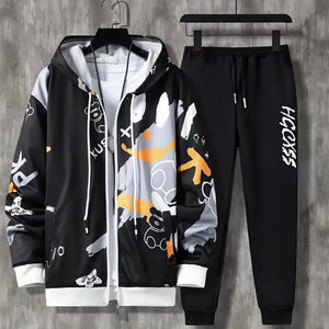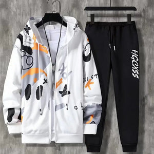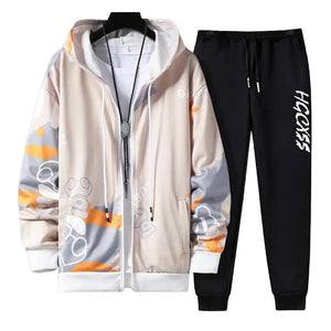 Versatile 2-piece sportswear set for men, designed for simplicity, beauty, and comfort, with a long sleeve cardigan hoodie and sweatpants that can be worn together or separately.