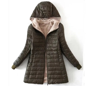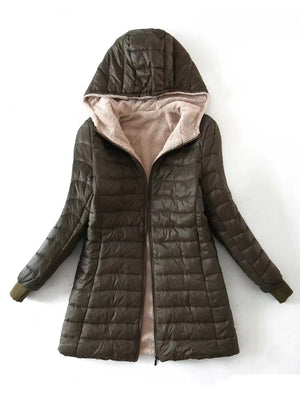Home 2023 New Autumn and Winter Korean Style Mid-length Hooded Cotton Coat for Women Lambswool Warm Cotton Coat and Velvet Jacket Top