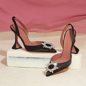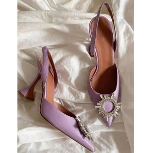 2024 Bow Rhinestone High Heels Sunflower Silk Pointed Party Sandals For Women Wedding Shoes