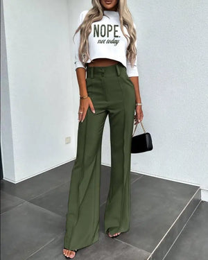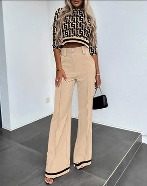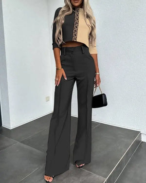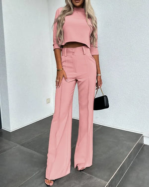 2024 Spring and Autumn New Fashion Small High Neck Slim Fit Women's Set Solid Pocket Micro Horn Pants Set for office lady