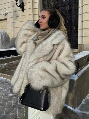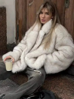 2024 Winter Ins Fashion Girls Oversized Gradient Fur Coat Women Thick Warm Lapel Outerwear Fluffy Faux Fur High Street Jacket
