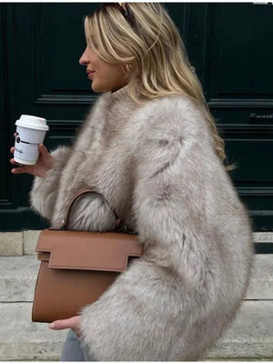Model Number: Faux Fur O-neck Coat Women