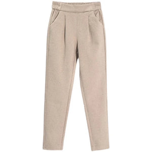 3 Colors Woolen Pants Women's Harem Pencil Pants 2024 Autumn Winter High Waist Elastic Korean Style Lady Suit Pants Trousers