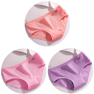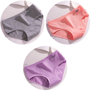 3Pcs/Set Candy Color Underwear Womens Comfortable High-quality Cotton Panties Mid-waist Breathable Underpanties Plus Size Briefs