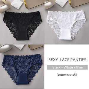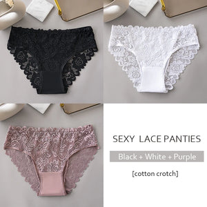 3PCS/Set Luxury Floral Embroidery Lace Panties Women Briefs Sexy Hollow Lingerie Female Underwear Ladies Breathable Underpants