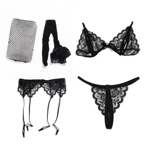 4pcs Sexy Erotic Lingerie Women Bra And Panty Garters See Through Lingerie Sets Sexy Women's Underwear Set Female Sexy Costumes