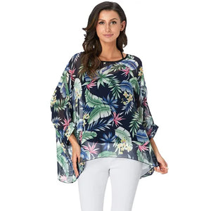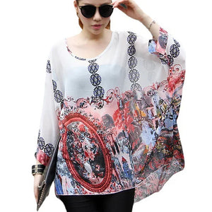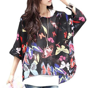 4XL 5XL 6XL Plus Size Blouse Shirt Women New Striped Print Summer Tops Tees Batwing Sleeve Casual Chiffon Blouses