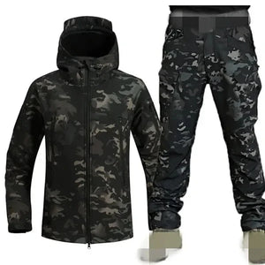5XL Shark Skin Soft Shell Autumn and Winter Plush Thickened Mountaineering Tactics Training Breathable Windproof Charge Suit