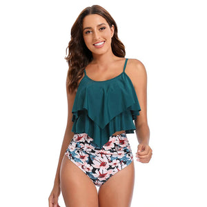 8 Colors Women Ruffled Tankini Set Padded Top With Adjustable Shoulder Straps Elastic Slim Knitted High Waisted Beachwear