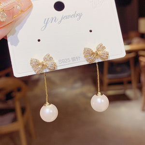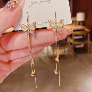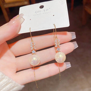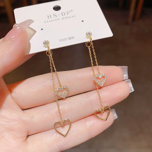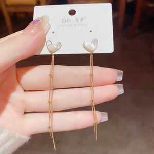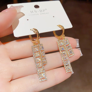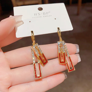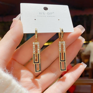 925 Silver Pin Earrings Classic Long Geometric Tassel