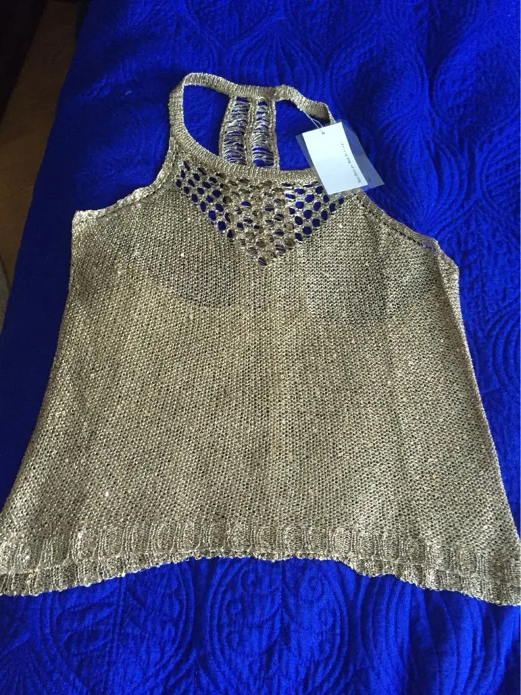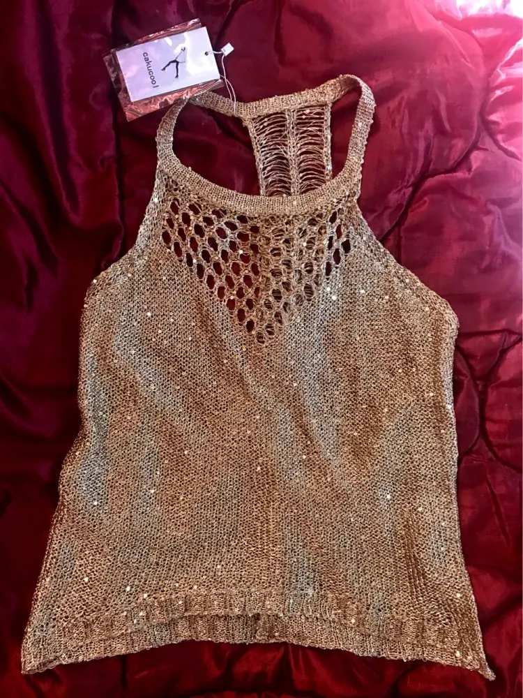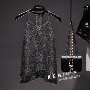 Home a Summer sexy hollow out knitted camis women shiny bling bling sequined tanks tops women shiny sequins tanks gold camis tops