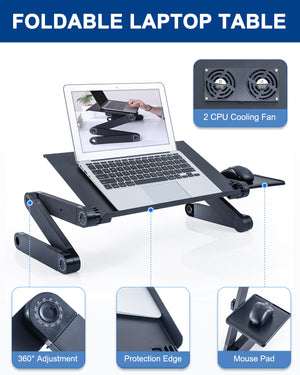 Adjustable Laptop Stand, RAINBEAN Laptop Desk with 2 CPU Cooling USB Fans for Bed Aluminum Lap Workstation Desk with Mouse Pad, Foldable Cook Book Stand Notebook Holder Sofa,Amazon Banned