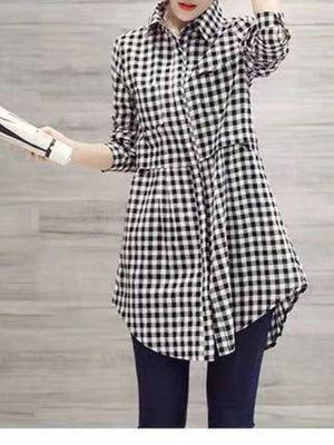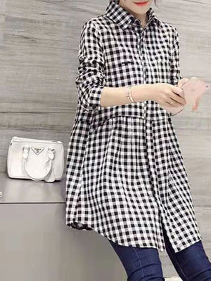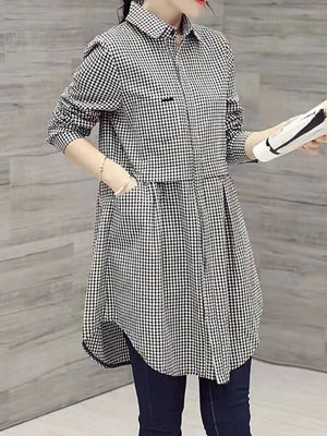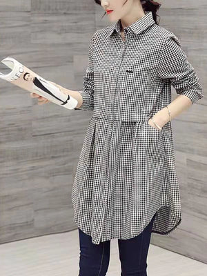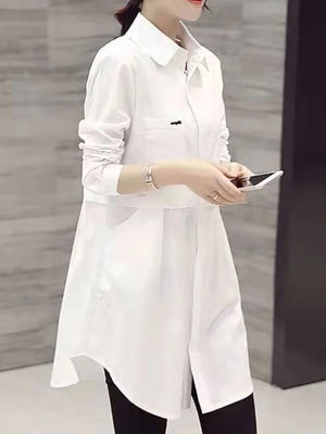 All-match Button Solid Midi Autumn Blouse for Female Korean Fashion Spliced Shirt Loose Long Sleeve Winter Polo-Neck Shirt