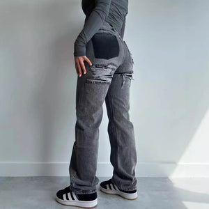 Home Aoaiiys Baggy Jeans Women High Waisted Vintage Denim Pants Fashion Jeans Loose Trousers Patchwork Casual Streetwear Y2k Jeans