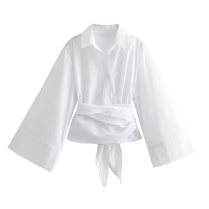 Autumn and Winter New Women's Fashion Casual Polo Neck Bow Tie up Short Edition Double breasted Poplin Shirt