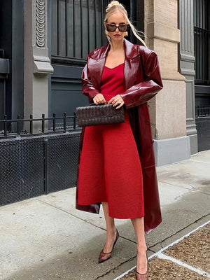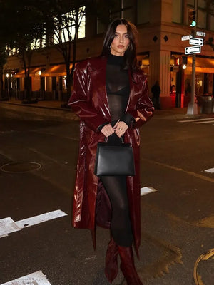 Model Number: Autumn Burgundy Long Shiny Leather Trench Coat