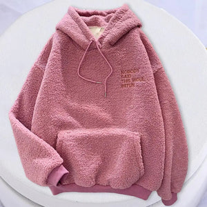 Stay warm and stylish with this women's autumn and winter fleece sweatshirt. The hoodie features a drawstring adjustment for a personalized fit and large connected pockets on the front for added convenience. Made of velvet material, this thick sweatshirt is perfect for cold winter days.