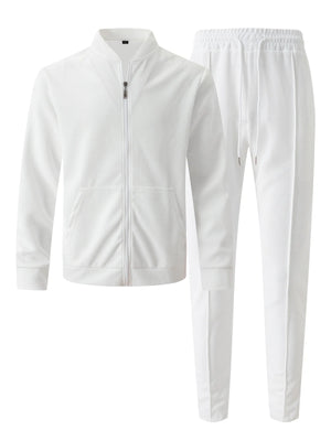 Autumnwinter men's casual blazer set new fashion Waffle baseball suit round neck pocket zipper long sleeve trousers two-piece se