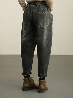 vintage casual cowboy pans de mujeres: spring fall Elastic Waist denim trousers women