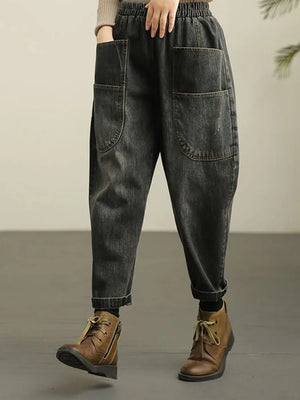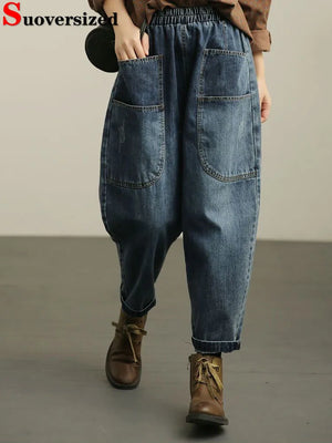 Baggy Hight Waist Harem Jeans Woman Korean Streetwear Ankle Length Denim Pants Spring Fall Vintage Casual Pocket Kot Pantolon