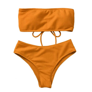 Swimming trunks with a high waist, bandeau with pads and no underwire, this split bikini will make you look more sexy and attractive while providing comfort, and it won't affect your bust shape if long periods of time.