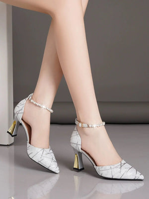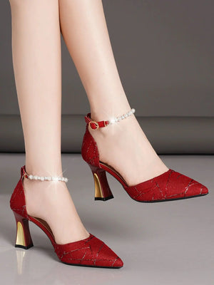 Beads Pumps Pointed Tip Women's High Heels Heeled Sandals Woman Luxury Womens Shoes Woman Trend Mary Jane Shoes Heel