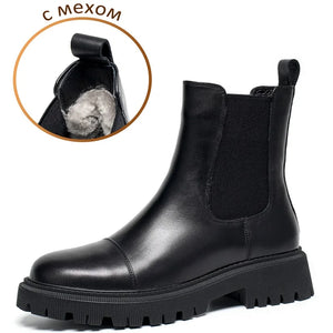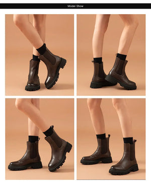 Home BeauToday Ankle Boots Platform Women Cow Leather Chelsea Boots Round Toe Elastic Band Thick Sole Ladies Shoes