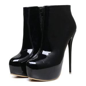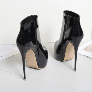 Big Size 35-47 Patent Leather Women Boots Round Toe Side Zipper Super High Heels 16CM Pumps Sexy Platform Party Shoes Woman