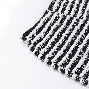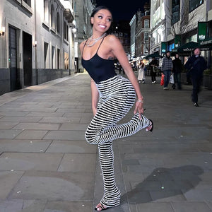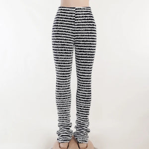 Black and White Striped Knitted Stacked Pants Women Bottoms Streetwear Extra Long High Waist Flare Pants