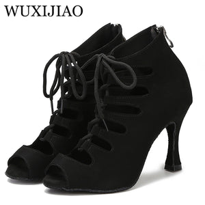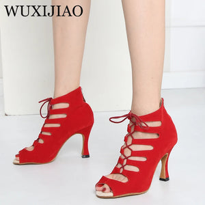 Black Latin Dance Shoes Women Tango Salsa Rumba Ballroom Satin Dance Boots Women Red Sexy Pole Dance Shoes Ladies High Heels