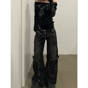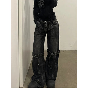 Black Women's Jeans High Waist Hip Hop Straight Fashion Pants Streetwear Harajuku Y2K Star Female Wide Leg Denim Trouser