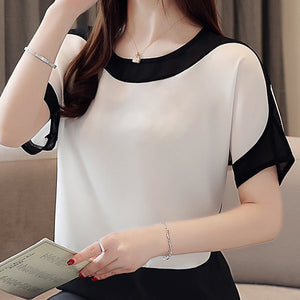 Blouses Summer White Blouse Short Sleeve Blouse Women Blusas Mujer De Moda Verano O-Neck Chiffon Blouse Shirt Tops