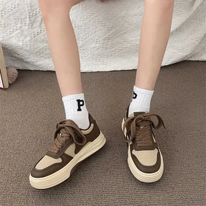 Board Shoes Women's Sneakers New Muffin Thick Bottom Khaki Black White Color Matching Fashion Women's Shoes Casual Sports Shoes