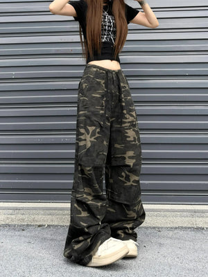 Camouflage Baggy Cargo Pants Women High Rise Trousers Straight Wide Leg Oversize Pants Summer Aesthetics Vintage Y2K jeans