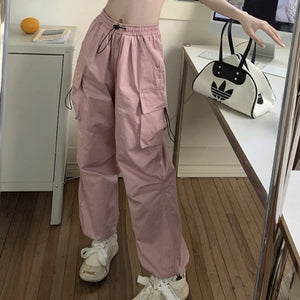 Casual Joggers Cargo Pants Women Solid Low Waist Pants Drawstring Wide Leg Baggy Trousers Y2k Streetwear Oversize Sweatpants