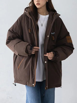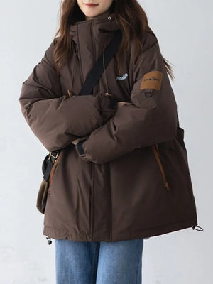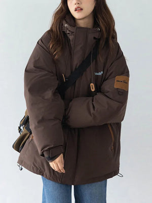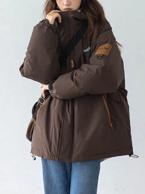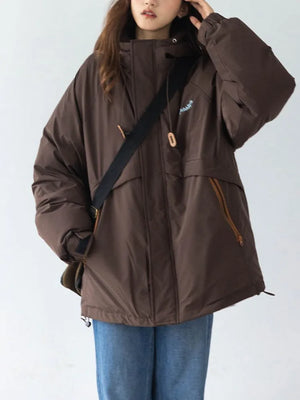 Coffee Cotton Padded Jacket 2024 Korean Winter Parkas Women Outdoor Loose Solid Short Warm Streetwear Fashion Bubble Bread Coat