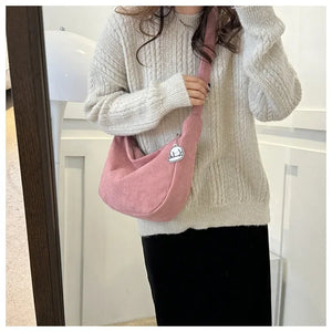 Corduroy Lazy Wind Everything Japanese Literary Single Shoulder Crossbody Student Casual Korean Female Simple Dumpling Bag