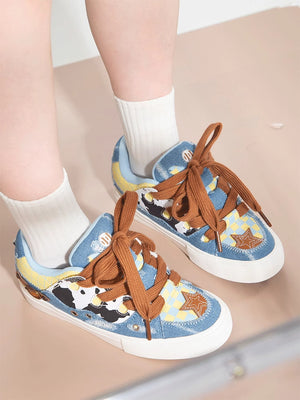Cow Patterned Denim Canvas Patchwork Board Shoes