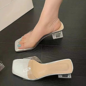 Crystal Clear Transparent Slippers Female Shoes Middle Heels Comfortable New Summer Women Shoes Woman Fashion Cool Mules Slides