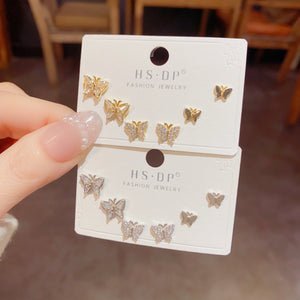 Cute Sweet And Small Exquisite Smart Shining Butterfly Studs Three-piece Set Sterling Silver Needle