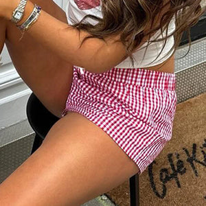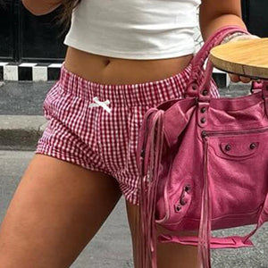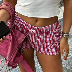 Cuteandpsycho Casual Plaid Print Y2K Shorts Bow Aesthetic Cute Korean Elastic Waist Bottoms for Women Casual Fashion Chic Cloth